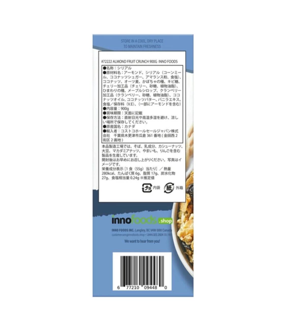 Innofoods アーモンドフルーツクランチシリアル 900g 朝食 グラノーラ ナッツ フルーツ オーガニック